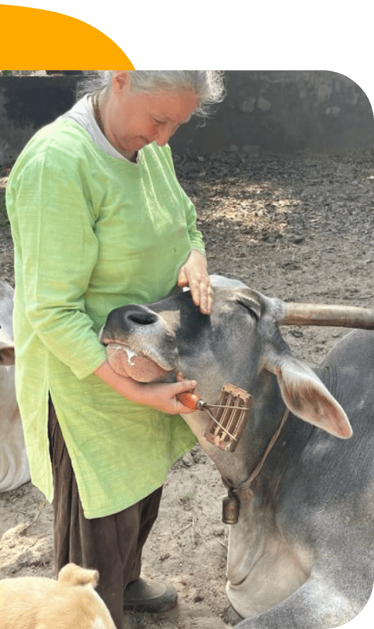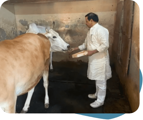 Our Go Sevaks are dedicated to serving cows full-time by caring for their nutrition and hygiene, growing seasonal feed and much more. We provide them with financial support for their valuable service.