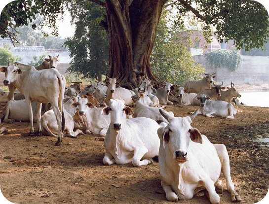 By building cowsheds in Vraj for Sri Haridas Niwas' growing cow population, we facilitate US-based support for the well-being of Vraja's cows.